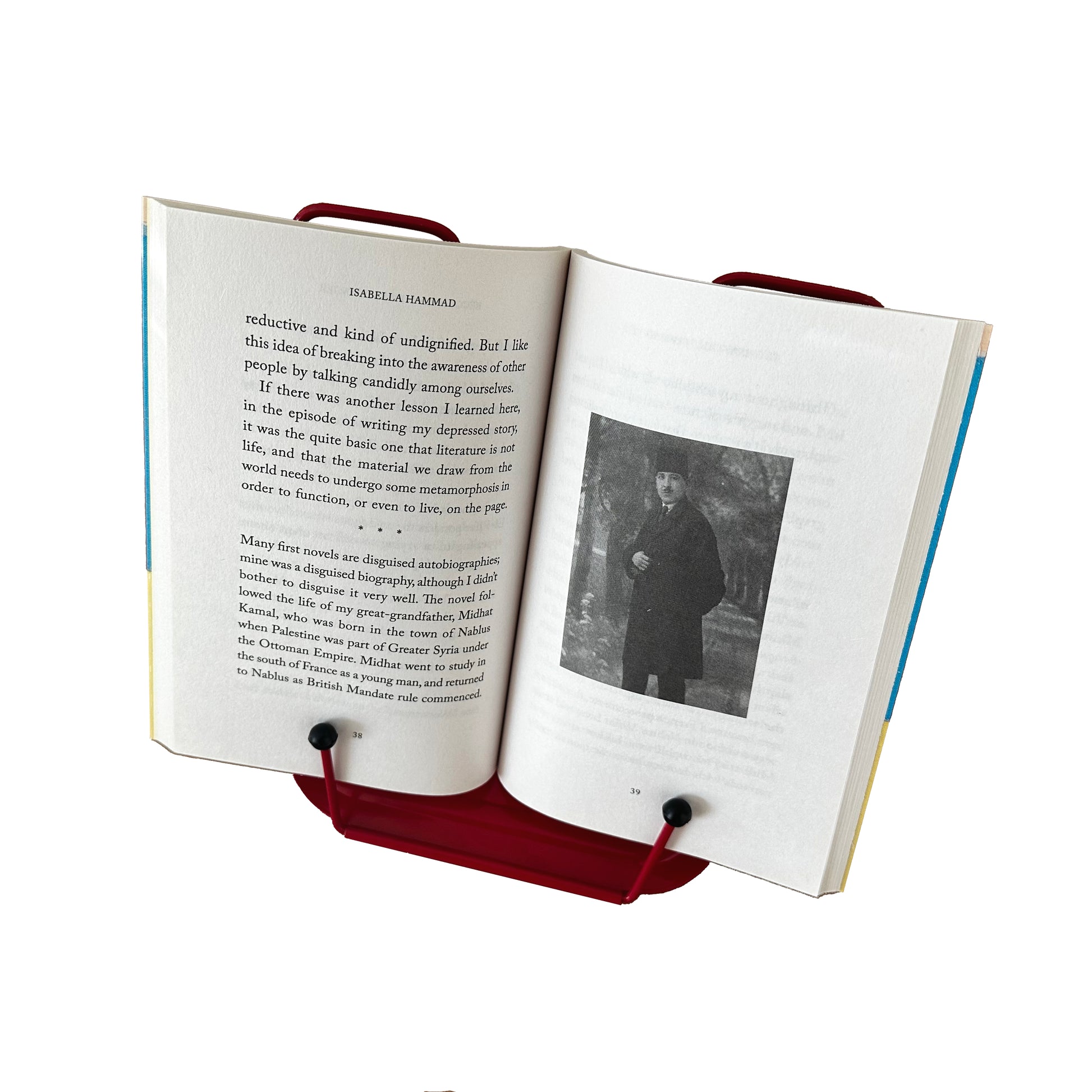 A folding steel book-rest adjustable in 3 angles by Hightide. Lightweight and modular and easy to store. Perfect for multi-tasking—cooking, transcribing, or just reading.